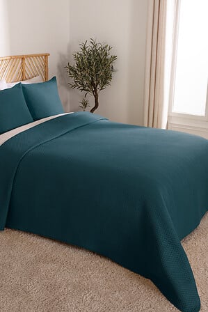 Dessus de Lit DOLCE – 240 x 260 cm + 2 Taies d’Oreiller Bleu Canard